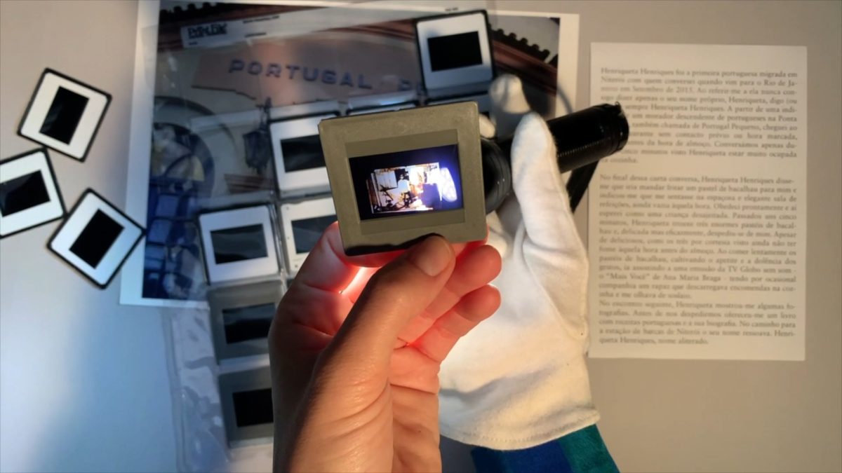Por um acúmulo grande de trabalho e razões pessoais nem sempre felizes que incluíram processos de perda e luto, não tive praticamente oportunidade de pensar na performance nos meses que se seguiram. Entretanto, chega o ano de 2020, com ele a pandemia e o confinamento, tendo apenas havido uma sessão ao vivo do ciclo de apresentações previstas para o Atelier de Lisboa, a da autoria de Eduardo Breda. Confinados, algum tempo depois, reuníamos online (nós performers e os curadores do Perphoto) para reagendar as sessões e repensar as apresentações para uma modalidade também online que não comprometesse a natureza das propostas idealizadas, ainda que isso pudesse implicar a reformulação quase total dos projectos. No meu caso, não houve praticamente tradução ou adaptação para um outro formato: tratou-se, desde este agora início, de pensar um processo (de montagem, de ensaios) inteiramente concebido para o meio ecrã e não para o palco. E assim foi. Praticamente um ano após essa conversa, apresentava online, em Fevereiro de 2021, aqui já está sumindo eu, tendo em Junho desse mesmo ano feito nova apresentação para o grupo de estudos Imagem/Tempo, a convite do (também saudoso) professor Mauricio Lissovsky (1958 – 2022), co-orientador da minha tese de doutoramento, a qual se baseou em muitas das imagens ali exibidas perante e através da tela luminosa, incididas (ou desfasadas) através do recito vocal. Na altura, achei que se encerrava um ciclo iniciado em 2016, composto pelas várias acções em torno de um mesmo corpus fotográfico. Essas abordagens distintas – textos, exposições, publicações, uma tese – assumiram títulos diferentes, como Lembranças, Souvenirs, Recuerdos: fotografia e migração portuguesa para o Brasil, aqui sou eu / aqui já está sumindo eu ou apenas aqui já está sumindo eu. A variação dos títulos de algum modo acompanhou a diferença dos gestos ou mesmo linguagens disciplinares que, simultaneamente, (re)activavam, animavam e diferenciavam essas fotografias. Diferenciavam-nas não só umas das outras como tentavam dar a ver como elas se diferenciavam de si próprias, ou seja, como as imagens adquiriam novos sentidos e camadas de leitura, consoante eram vistas e lidas numa tese, numa exposição, numa publicação, em crónicas para periódicos, etc. Um desses gestos ou abordagens foi uma edição em três versões de um livro-fichário feito em co-autoria com a antropóloga Daniela Rodrigues*, associando este aqui já está sumindo eu às coisas de lá da sua pesquisa – as coisas levadas e trazidas em malas por portugueses que estavam no Rio de Janeiro (então) desde há cerca de dez anos, no máximo.