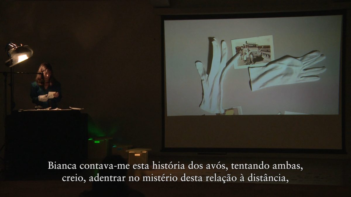 Se aparentemente aceitei de pronto o convite, foi por ter vislumbrado na proposta para um acto de criação uma possibilidade mais propriamente fotográfica do que performática na apresentação perante um público; para mim, esta era particularmente apelativa após anos de proximidade – mas também de estranhamento – com várias fotografias de família (também elas estranhas à minha própria família) e com memórias tecidas a partir delas que até aí não tinham tido expressão. Aliás, que tinham tido certas expressões, emergências, abordagens (na tese, em livros, apresentações em conferências), mas não uma determinada expressão que se prendia com a sua própria capacidade em assumir várias expressões. Esta possibilidade era também a da incidência através da acção física da presença (discreta) do meu corpo num espaço, dos gestos das mãos, do ritmo e do movimento das palavras, de desencantar processos de revelação (fotográficos, poderia dizer) de narrativas associadas à mostra e sequência das imagens. Essas narrativas, por sua vez, suscitavam a meu ver novas imagens que influíam nos sentidos aparentes daquelas que apresentava, juntava, retirava, ou que a eles escapavam. Sobreposições, derivas, errâncias dos sentidos e das próprias imagens.