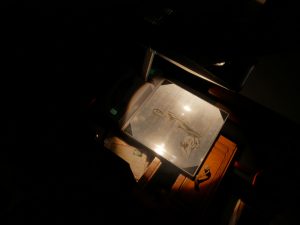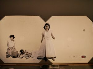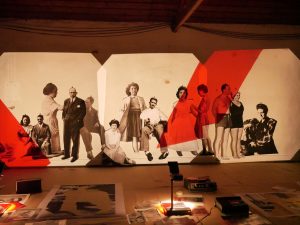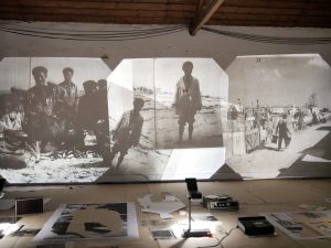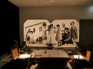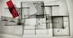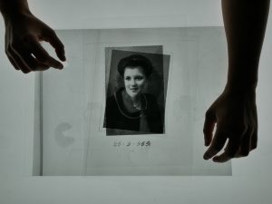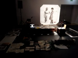 Starting from this research, the artist appropriates the images, and presents them, in the context of a performance, rearranged, cut, and reproduced in transparent material, and reactivates them through an installation that uses luminous devices such as light boards or projectors, complemented by sound fragments recorded by magnetophones.